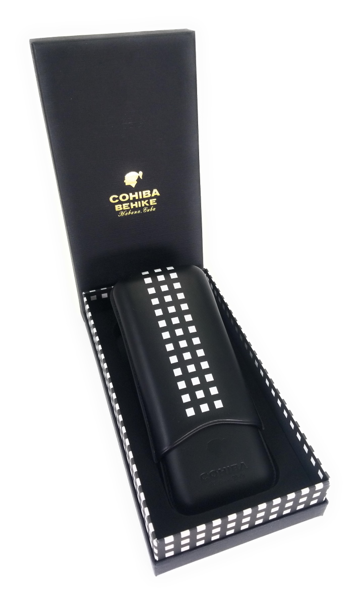 The Cohiba Behike cigar case comes in a two-tone design featuring the iconic black and white checkered design of the Behike line. Embossed with the Cohiba name, it is the perfect addition to any aficionado’s pocket.