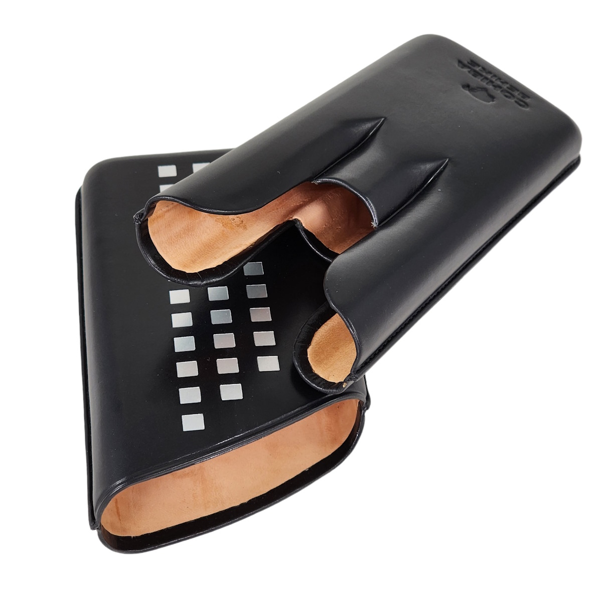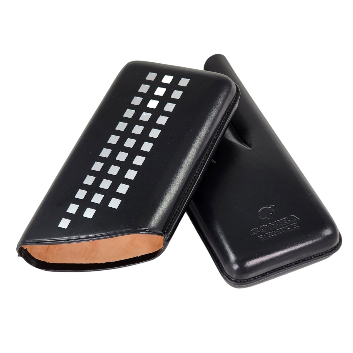 The Cohiba Behike cigar pouch has plenty of room for (3) large ring gauge cigars with 3" of space inside. It comes in a two-tone design featuring the iconic black and white checkered design of the Behike line. Embossed with the Cohiba name, it is the perfect addition to any aficionado’s pocket.