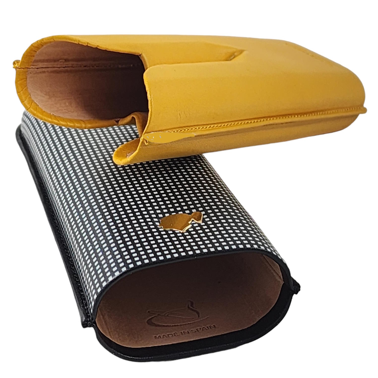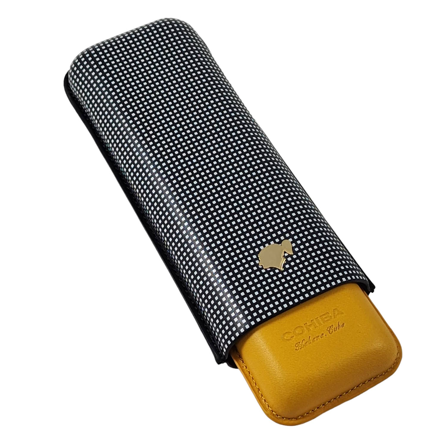 Cohiba Leather Adjustable 2 Cigar Case - Black Check & Yellow