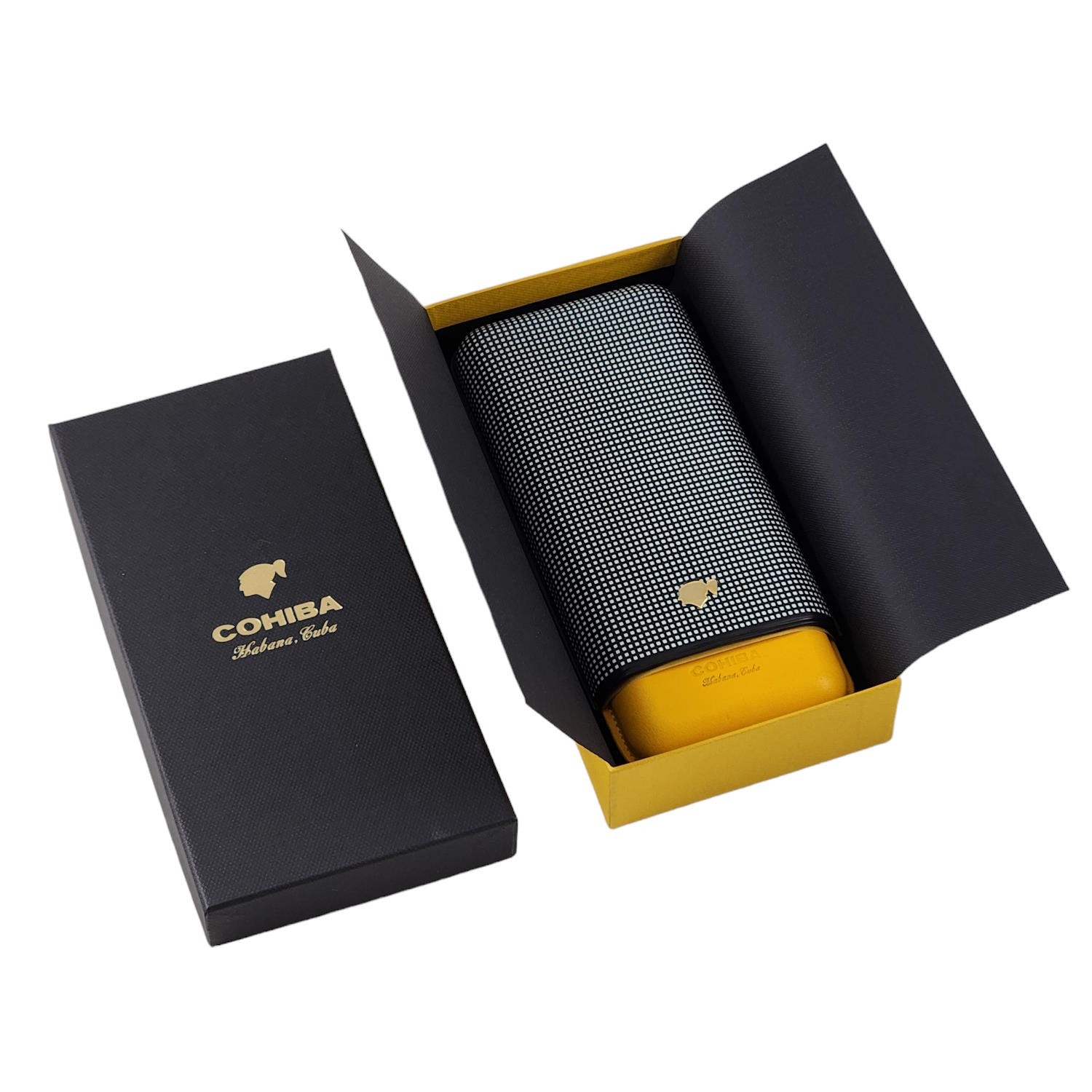Cohiba Leather Adjustable 3 Cigar Case - Black Check & Yellow