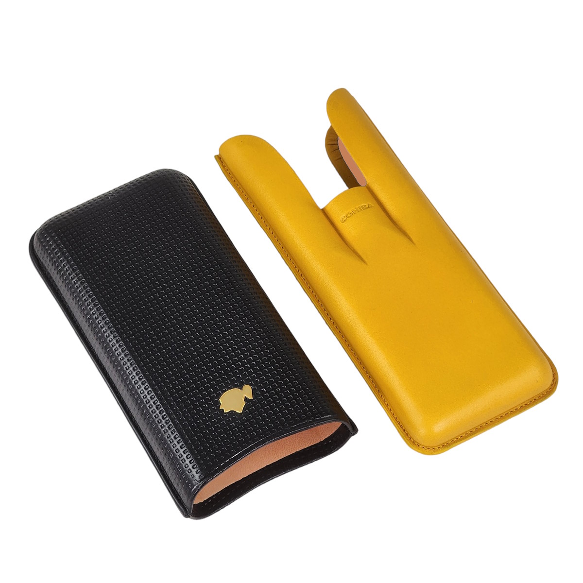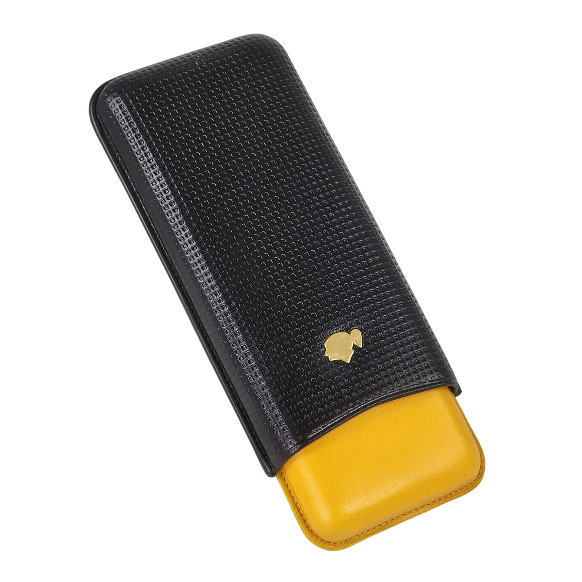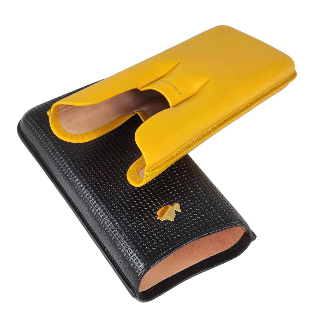 Cohiba Leather Adjustable 3 Cigar Case - Yellow & Black