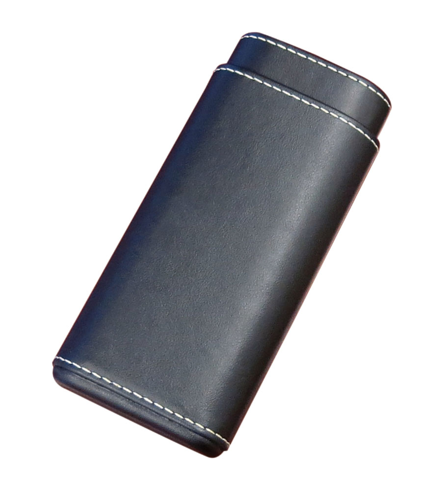 Each 3 cigar case holds three 7.5" Churchill- length cigars up to 52-ring gauge each, keeping any smoke safe with a modern style all its own. Handmade in leather, each piece has a well-dressed appearance and a soft feel. Contrast stitching secures the leather, giving it a contemporary look. The inner lining of the crush-proof case, crafted with genuine Spanish cedar, holds the ambient humidity of the cigar and projects the fresh cedar smell of a humidor on every opening.