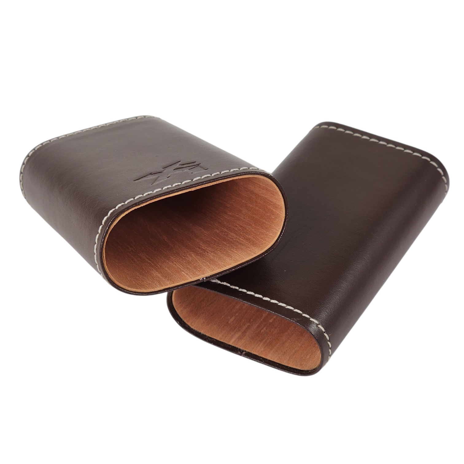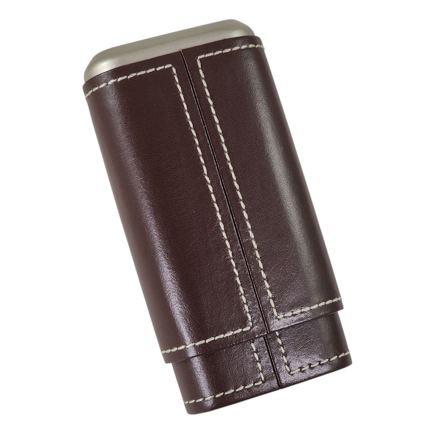 This Envoy 3 cigar case holds (3) Churchill-length cigars up to 52-ring gauge each, keeping any smoke safe with a modern style all its own. With top-grain, armada leather, each piece has a well-dressed appearance and a soft feel. Contrast stitching secures the leather, giving it a contemporary look. The inner lining of the crush-proof case, crafted with genuine Spanish cedar, holds the ambient humidity of the cigar and projects the fresh cedar smell of a humidor on every opening. Stylish metal caps cover each end, reinforcing the strength of the case.