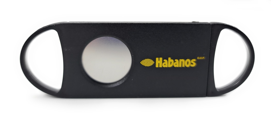 The Habanos single blade guillotine cigar cutter fits up to 58 ring gauge cigars, is equipped with a Stainless Steel blade manufactured in Solingen, Germany, and makes it easy to perform a great quality cut.