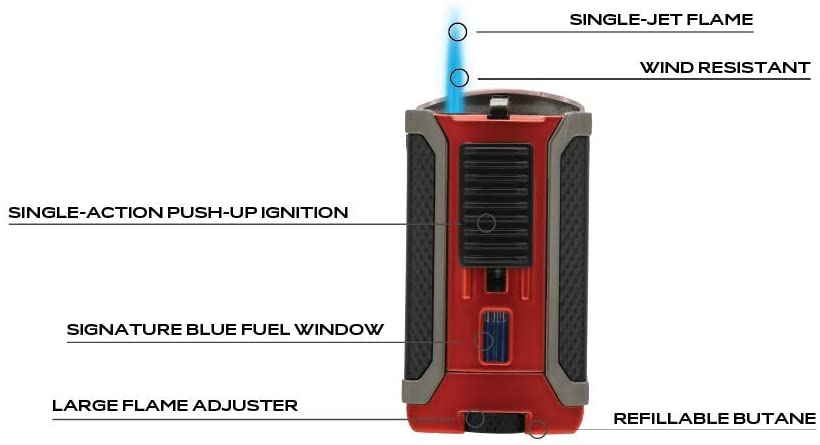 A pachmayr pattern covers the sides and back of the body to provide a secure grip while handling. At the bottom, the large fuel adjuster easily moderates the flame height.