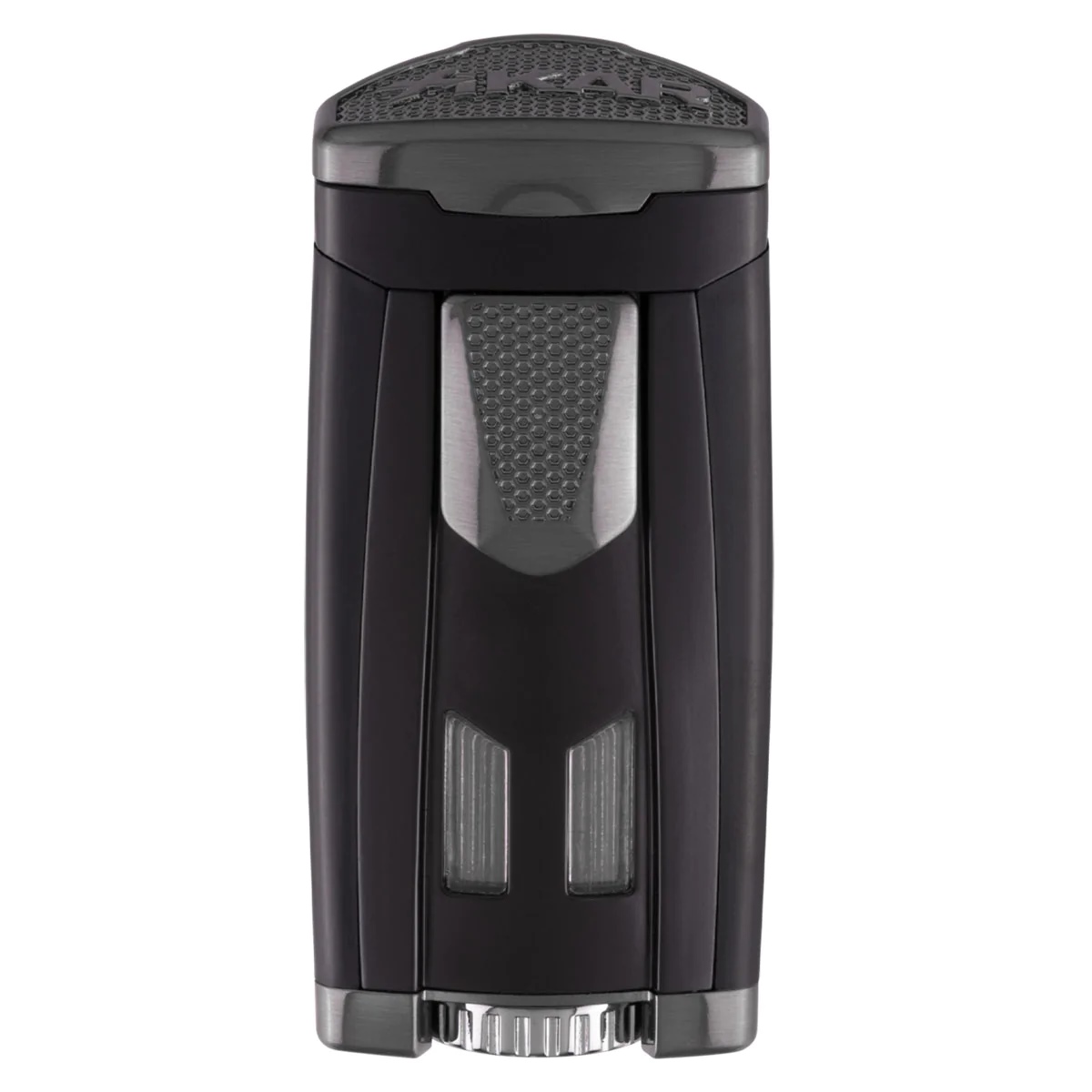 The streamlined appearance of the XiKAR High Performance Triple Jet Flame Lighter (HP3) is engineered for performance and precision. Easily inspect remaining butane levels in your tank through the over-sized double EZ-View™ red fuel windows and fine-tune your desired flame height with a quick turn of the over-sized adjustment wheel, centrally located at the base of the lighter.