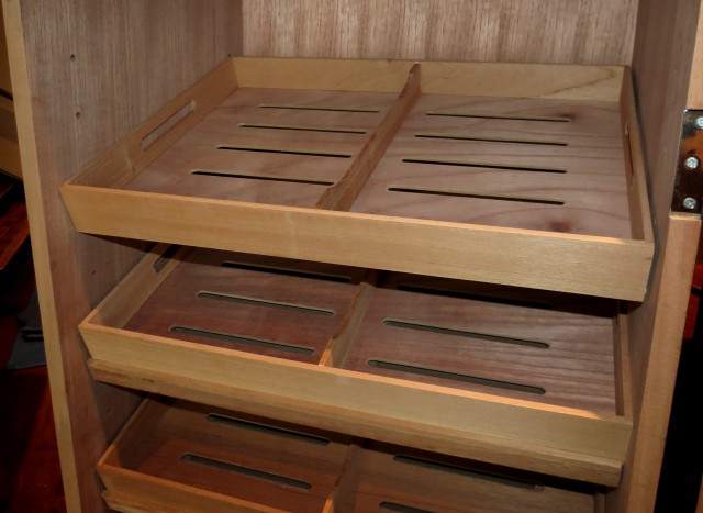This Spanish Cedar Tray can be used to add storage to cabinet humidors such as the Mini-Tower, Tower and other custom-builds. It can also be used to add storage versatility to any larger humidor, reach-in or walk-in that can accommodate this large tray. It will also fit some of the larger wine cooler and cooler conversions. Made of solid, kiln-dried Spanish Cedar with a cedar veneered bottom.