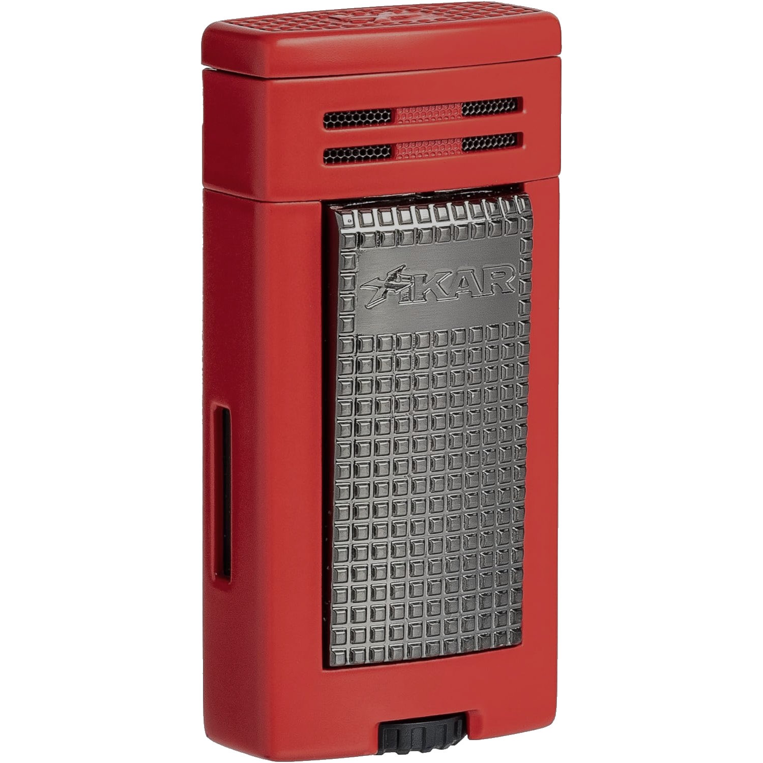 The XIKAR® Ion Double-Jet Cigar Lighter enhances your cigar-smoking experience with a dual-jet torch and an oversized, textured trigger button for easy ignition. The textured design of the trigger button ensures a secure grip. Moreover, a safety mechanism locks the trigger when the cap is closed.