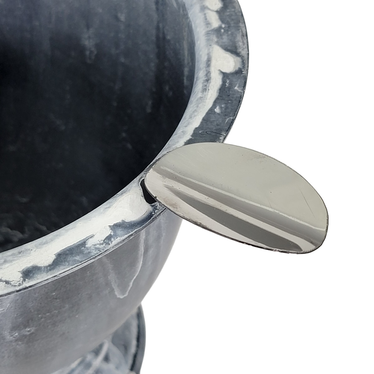 This "taller" cigar Ashtray is 6½ inches tall by 7 inches in diameter. The bowl holds a huge volume of ashes, so don't be afraid to go for it! Besides, the 4 stirrups will hold a few sticks at a time, so invite those friends over.