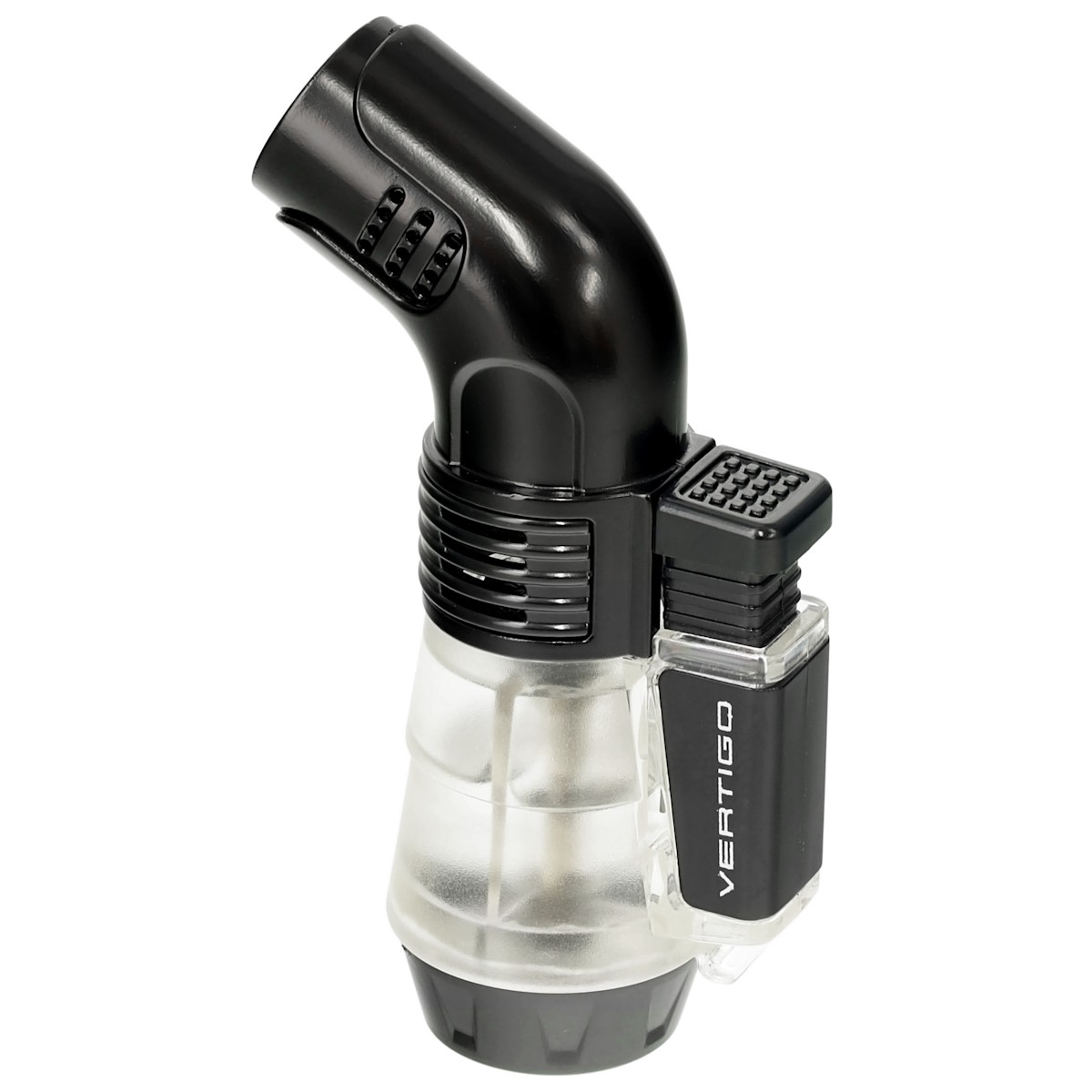 Introducing the Vertigo™ Boxer lighter by LOTUS! A practical, value-priced lighter, the Boxer comes out swinging with its three powerful windproof torches that are sparked by a Piezo ignition system. This refillable lighter’s fuel tank serves as a fuel-level window. It's a wind-resistant torch with a huge fuel reservoir. Lights every time and feels great in your hand.