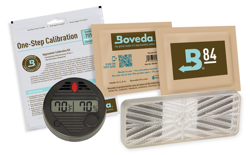 Our humidity upgrade kits provide excellent convenience and accuracy to get your humidor running right from the start! The digital hygrometer along with the one-step calibration bag will ensure accurate measurement of the relative humidity (RH) inside your humidor, while the crystal gel humidifiers will keep the humidity at the optimum level and the seasoning packs will get your humidifier started right.