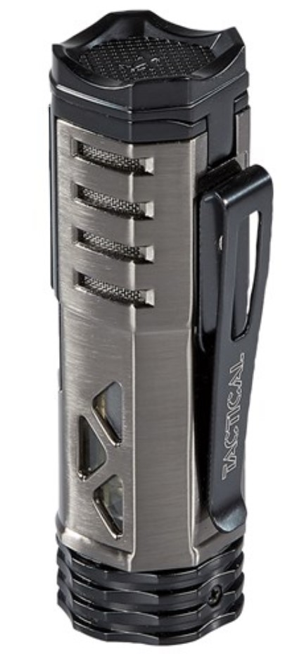 The functional appearance of the XiKAR Tactical 1 single jet flame lighter is engineered for performance and practicality. Easily inspect remaining butane levels in your tank through the over-sized double EZ-View™ red fuel windows and fine-tune your desired flame height with a quick turn of the over-sized adjustment wheel, centrally located at the base of the lighter.