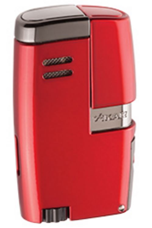 Introducing the Vitara Lighter... A solid, double flame lighter with a slide-action trigger. It features a built-in side 7mm punch, an oversized fuel adjustment wheel, and an easy-view fuel window. A simple thumb press on the trigger opens a protective cap and ignites two powerful jet flames. The metal body case has durable finishes of black, chrome silver, gunmetal, and white.