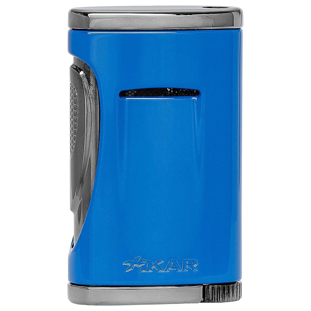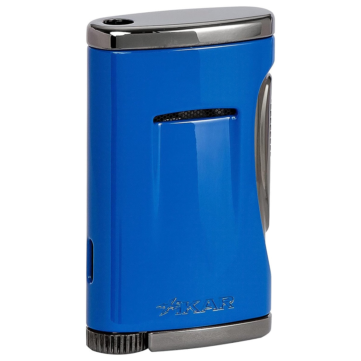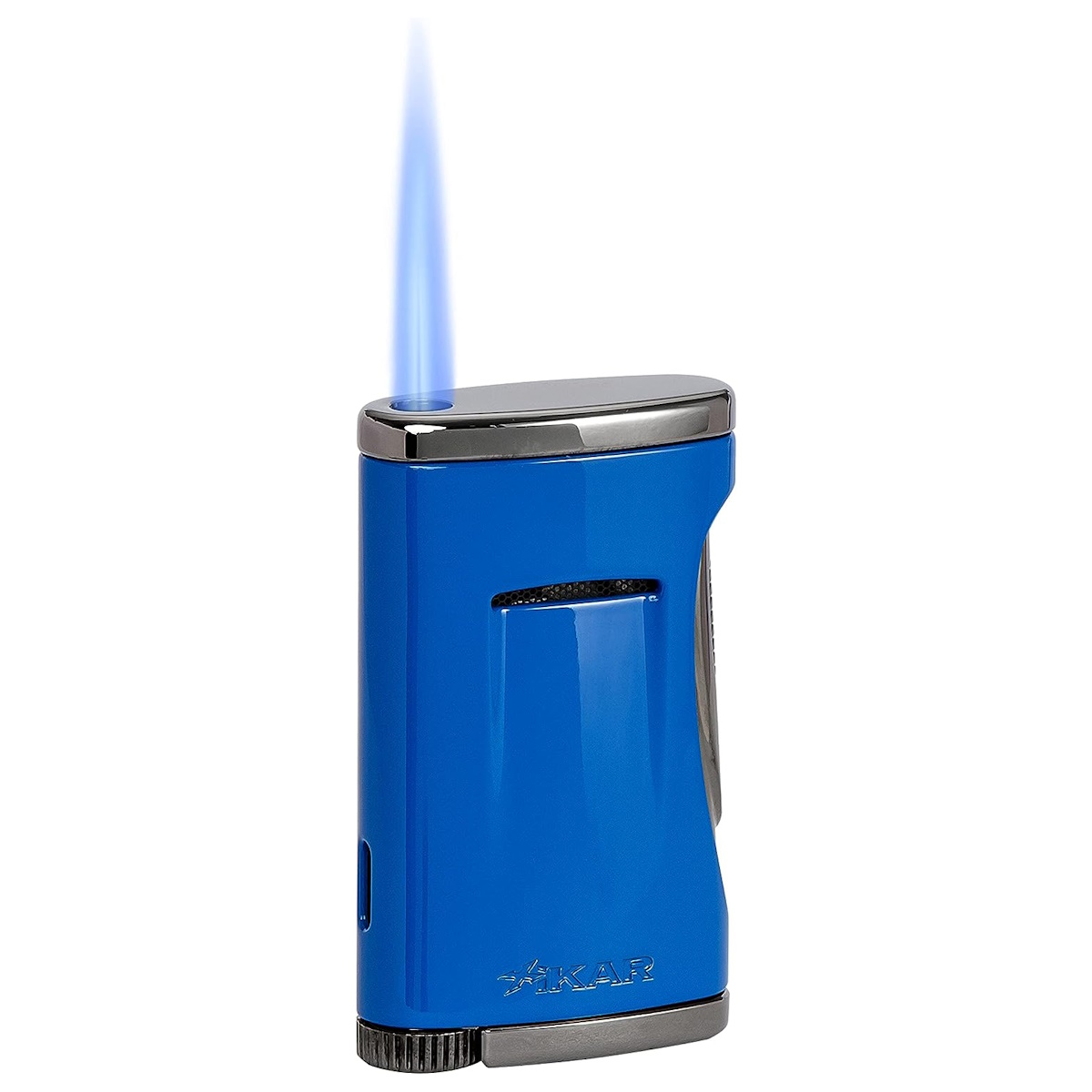 By placing the trigger along the lighter body, one's finger is no longer perilously close to the flame (no burned fingertips!) A simple push of the side of the lighter ignites a powerful jet flame perfect for cigars or that campfire that needs a little encouragement.